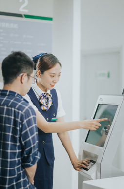 柜面服务人员向市民介绍自助服务